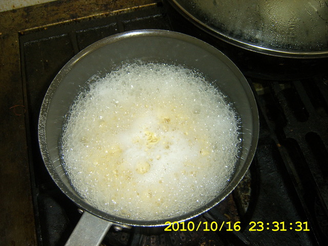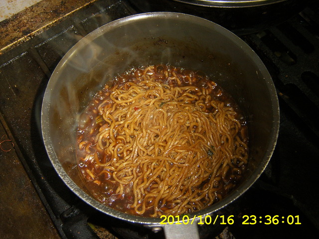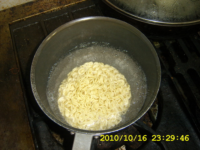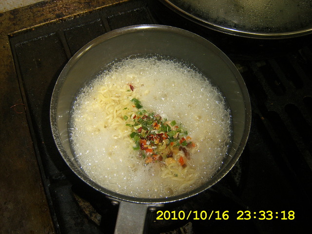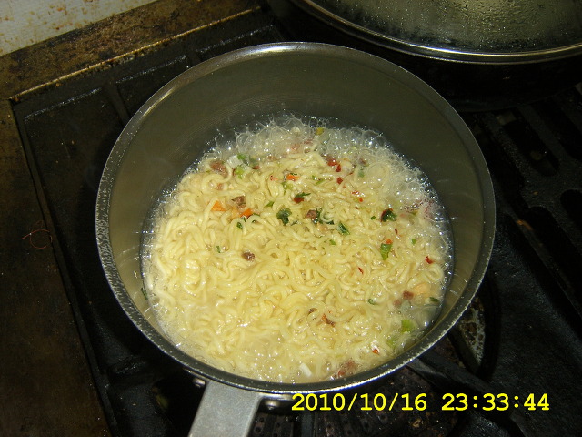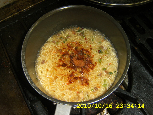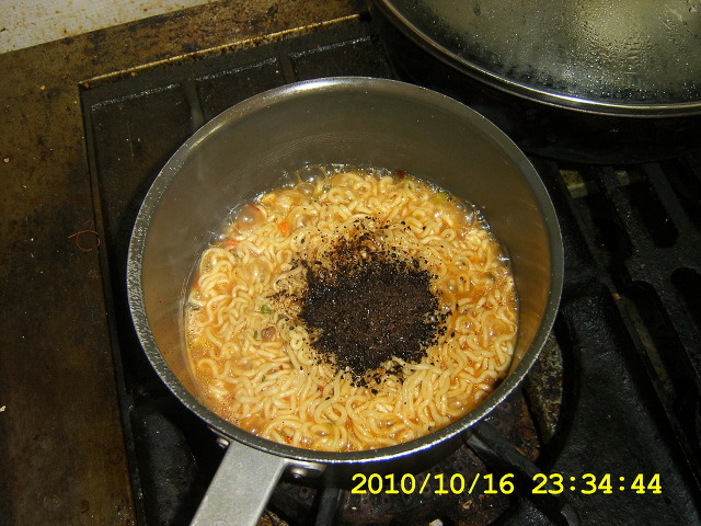 짜파게티면이 조금 더 굵어서 1분정도 먼저 넣고 끓입니다.