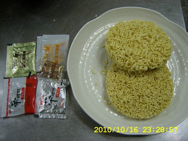 물이 끓을 동안 라면을 까서 준비를 해둡니다.