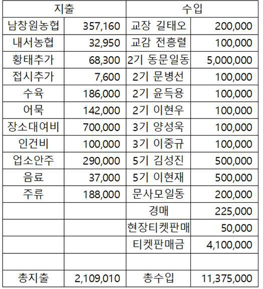 *수입금은 총동문 장학국에서 보관하여 장학금으로 소중이 쓰여집니다.
