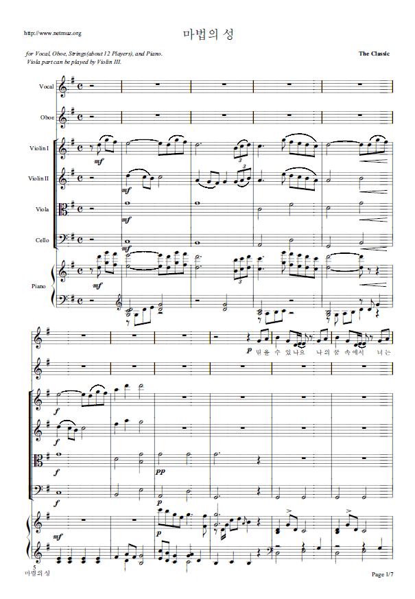 오늘올려드릴 악보는 더클래식의 마법의성입니다~!