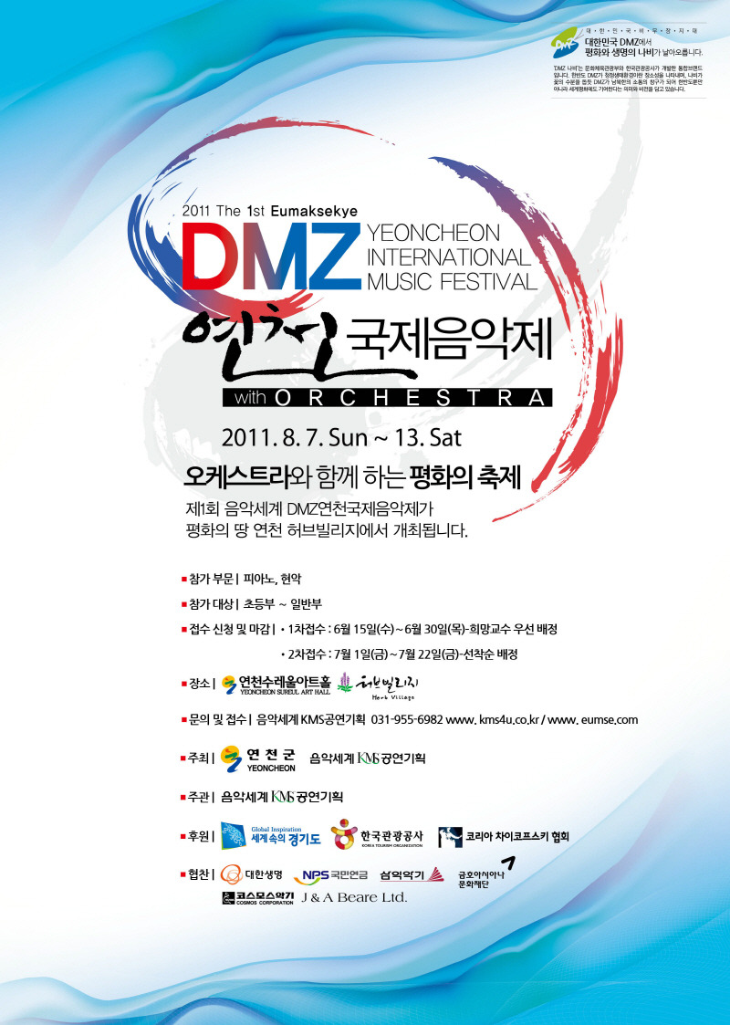 평화를 염원하는 클래식 음악축제 <DMZ연천국제음악제>가 오는 8월 7일부터 13일까지 임진강변이 어우러지는 경기도 연천 수레울아트홀과 허브빌리지, 군부대 등 연천군 일대에서 열립니다. <DMZ연천국제음악제>는 국내 음악문화를 선도하고 있는 [음악세계]가 지난 2007년부터 매년 강원도 하이원 리조트에서 개최해온 <여름 뮤직 페스티벌>이 그 모태입니다. 4년간의 경험과 꾸준한 준비과정을 거쳐 올해는 국제 규모로 음악제를 확대하여 오케스트라와 함께 더욱 더 풍성한 음악 프로그램을 선보이게 됩니다.