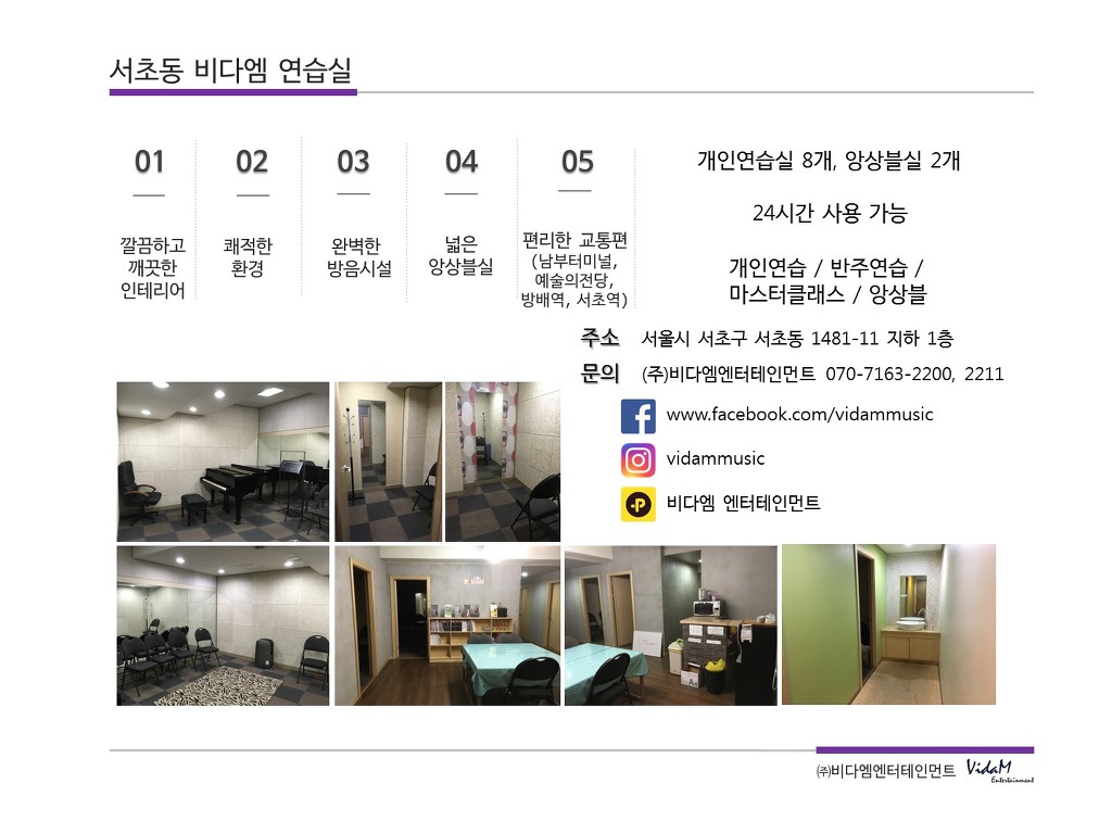 #연습실 #서초동연습실 #남부터미널연습실 #예술의전당연습실 #피아노 #현악 #관악 #개인연습 #연습 #반주연습 #반주 #마스터클래스 #앙상블 #앙상블실 #개인연습실 #24시간 #비다엠연습실 #비다엠엔터테인먼트