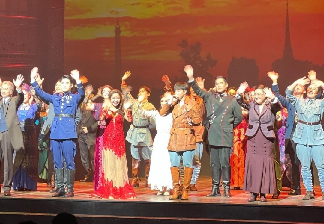 오늘의 홍르망은 머리에 힘을 빼고(왁스나 그런거 안 한듯) 덮홍으로 출격~ 그리고 잦은 라운딩 효과인지 약간 얼굴이 햇빛에 탔는지 뭔가 오늘은 좀 더 남성미가 느껴지는 건 저만의 느낌적인 느낌이었겠죠. 제가 C구역 1열(좌석표 상은 2열) 31번이었는데..B구역과 C구역의그 통로석이었거든요..완전 시야가 훤했답니다. 영상 찍을 수 있었다면 대박인 자리였어요. ㅎㅎ 그래서 사선으로 할르망 대기하고 있을 때의 표정까지 다 보였는데.. 딱 자리 잡고 감정 잡고 있는 모습이 역시 전문가의 포스가~~ ㅋㅋ 다리 씬에서는 성이 비슷하다며 발음을 엄청 굴려서 질~~로~~젤~~로~~ ㅎㅎㅎ 귀엽죠? '저 높은 곳' 넘버는 역시 오늘도 어레인지(엔딩 높게!)해서 불러줬어요 ㅎㅎ 다리 씬 마지막에 마타 집에 바래다 주겠다고 하니 솔타가 좋다하고 앞서 가려니까 거기 낭떠러지라며 애드립 투척.ㅋ 그리고 다리 쪽으로 데려가서 낙하산 구경해볼래요? ㅎㅎ(이번에 장갑은 그냥 챙겨 갔던 것 같아요) 꽁냥꽁냥 씬에선 보통 옥타때는 옥타가 홍르망과 같이 소파에 누워 등장 또는 옥이 홍르망 다리 베고 등장, 솔타 때는 소파에 나란히 앉아 등장했는데 오늘은 솔타가 홍르망 다리 베고 누워 등장했어요. 이 씬은 저의 개인적인 호는 옥타와 좀 더 꽁냥꽁냥 한 듯..대신 솔타와는 키스? 뽀뽀? 씬이 상대적으로 적어 좋았어요..ㅋㅋ(오늘은 두번만 했음.. ㅋㅋ 이걸 세고 있는 저 뭔가요? ㅋㅋ) 그리고 홍르망이 마타 공연 처음 보러 가서 안나와 인사나눌 때 안나가 홍르망 장난스럽게 보면서(너무 잘생겨서 ㅎㅎ) 악수할 때 손을 여러번 흔들었고 어깨를 몇번 치셨는데... ㅎㅎㅎ 나래안나 풍채가 있으시잖아요.. ㅎㅎ 홍기가 진짜 아팠는지? ㅋㅋ 어깨 매만지는데 웃겼어요. ㅎㅎ 전 개인적으로 나래안나가 호에요. ㅎㅎㅎ 바라두와 홍르망의 '남자대남자' 넘버는 오늘도 멋졌어요. 말해 뭐하겠어요.. ㅎㅎ 온 힘을 다해 노래하는 홍르망..오늘도 무대 조명 탓에 너무 잘 보인 무지개 빛 폭포 같이 튀는 침들..ㅋㅋ 침튀는 장면은 이때가 최고인듯.. ㅎㅎ '평범한 일상' 넘버 부를 때 수녀분이 걸쳐 준 가디건이 제대로 안착을 못해서 한쪽만 걸쳐 있어 아슬아슬.. 제가 무대로 올라가 잘 걸쳐주고 싶었다는.. 절 자제하니라 얼마나 애썼던지..ㅋㅋ 바로 제 앞에서 왔다갔다 했거든요..ㅋㅋ 결국 노래 끝에 가디건 걸친거 벗어서 한 손에 들고 마무리..ㅋ(센스 짱이죠) 재판씬 등장해서는 솔타 다독이는 섬세한 홍르망의 연기(입 모양으로만 괜찮다고 다독이는..ㅎㅎ ) 그리고 총 뺏어서 경관들과 대립하고 억울한 감정 쏟아내는 씬도 너무 박력있게 표현 잘 했고 재판장에서 끌려 나갈때도 그 억울함에 외치는 소리는 애절했고, 감옥씬에서의 마지막 이별 씬은 늘 폭풍눈물로 관객들을 슬픔 속에 빠트렸습니다. 제가 B구역과 C구역에서만 관극을 해서 이 감옥 씬에서 마타와 아르망이 부등켜 안고 울 때의 홍르망 모습을 한번도 보지 못했어요.. 아마 남은 두번도 다 B구역이라 이번에 영영 보지 못할 표정일 듯 합니다. 다만 어제는 사선으로 홍르망의 뒷모습이 온전히 슬픔을 다 담아냈더라는... 솔타는 옥타와는 달리 슬픔을 담백한 감정선으로 이끌려는 것 같았어요. 감정 잡기가 어려워서인지 모르겠지만 그렇게 이해하고 보면 많이 거슬리지 않았어요. 오늘은 눈물도 담백하게? 흘렸답니다.매번 감옥씬에서 홍르망은 눈물콧물 엉망이 될때까지 감정을 다 쏟아내는데 솔타는 담담한 듯한게 좀 안 어울렸거든요.. 근데.. 어찌보면 연상녀의 내면의 슬픔을 표현하려 했던 건 아닐까 싶기도 하고.. ㅋㅋ(좋은게 좋은거니까 ㅎㅎ) 마지막 헤어지는 씬...감옥에서 끌려 나갈때의 그 애절한 외침은 보는 사람 맘을 다 후벼파더이다.... 당연한거지만 회차를 거듭할 수록 연기가 일취월장 ㅋ 그래서 딸이 뮤는 후반에 가서 봐야한다고 했는데..우쩌것어요..빨리 보고픈데..ㅎㅎ 남은 2번의 공연이 귀합니다..ㅋㅋ. 써 본다고 썼는데 재미없죠? ㅋㅋ 그냥 생각나는데로..적어보았어요.. 추가로 커튼콜 무대 인사 할때 전과 다르게 경례해주었구요 솔타 인사하고 다들 계단? 위 무대(단차 있는)로 올라갈 때 홍기가 살짝 밀어서 장난을 쳤어요. 솔타도 맞대응으로 어깨 치면 잠깐 둘이 토닥투닥..ㅎㅎ (어떤 간 큰 분이 커튼 콜 사진 찍어 올렸길래 첨부할께요 ㅎㅎ 홍기가 웃고 있는게 그 장면입니다) 그리고 진짜 마지막 인사 할 때 손 흔들면서.. 눈맞춤 했어요.. 꺄~~~ ㅋㅋㅋ(저 만의 느낌이겠지만 ㅎㅎ) 그리고 막이 내려올 때 홍기가 양 옆으로 브이하면서 내려오는 막에 맞춰 점점 앉아주면서 관객들에게 호응해 주었답니다. ㅎㅎㅎ 글이란 자고로 핵심만 써야 하는 것을 ㅋㅋ 구구절절.. 읽어 주셔서 감사합니다. ㅋㅋ 넘 좋아었요. 한 순간도 졸지 않고 초 집중!! 어제 제 옆에 20대 중국인 여성분이었던 것 같은데 솔타 팬이더라구요. 마지막에 솔타를 부르며 어찌나 우는지.. ^^;;;;; 홍기야~~ 내 이리 울어주진 못했지만 진심으로 응원하고 있어~~ 앞으로도 열일하자~~~ ㅎㅎㅎ