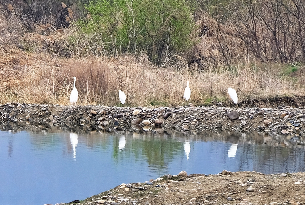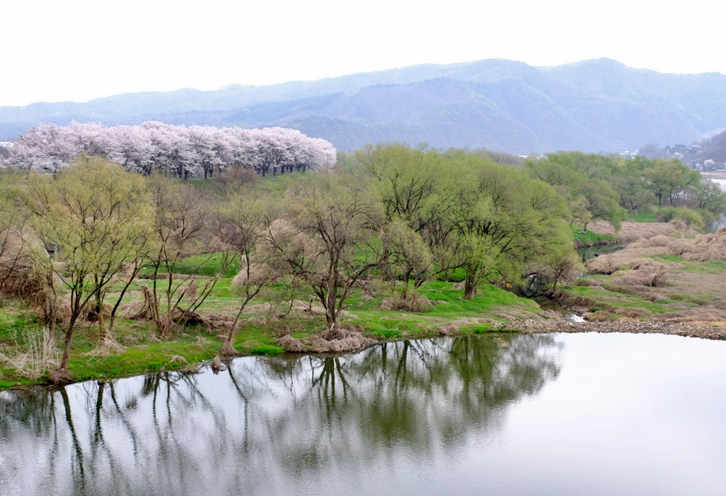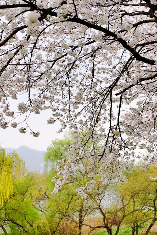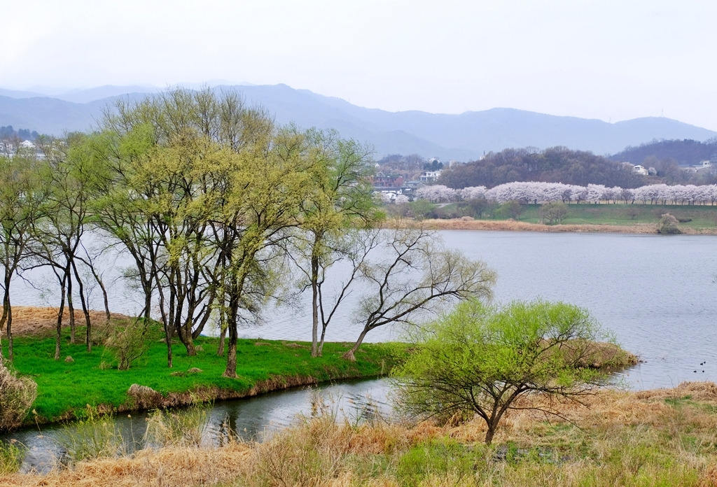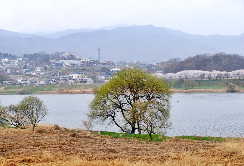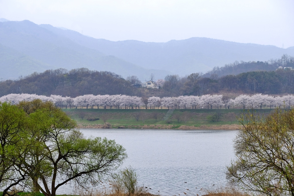 시종 벚꽃이 하얗게 핀 둑방길을 물소리 들으면서 걷는