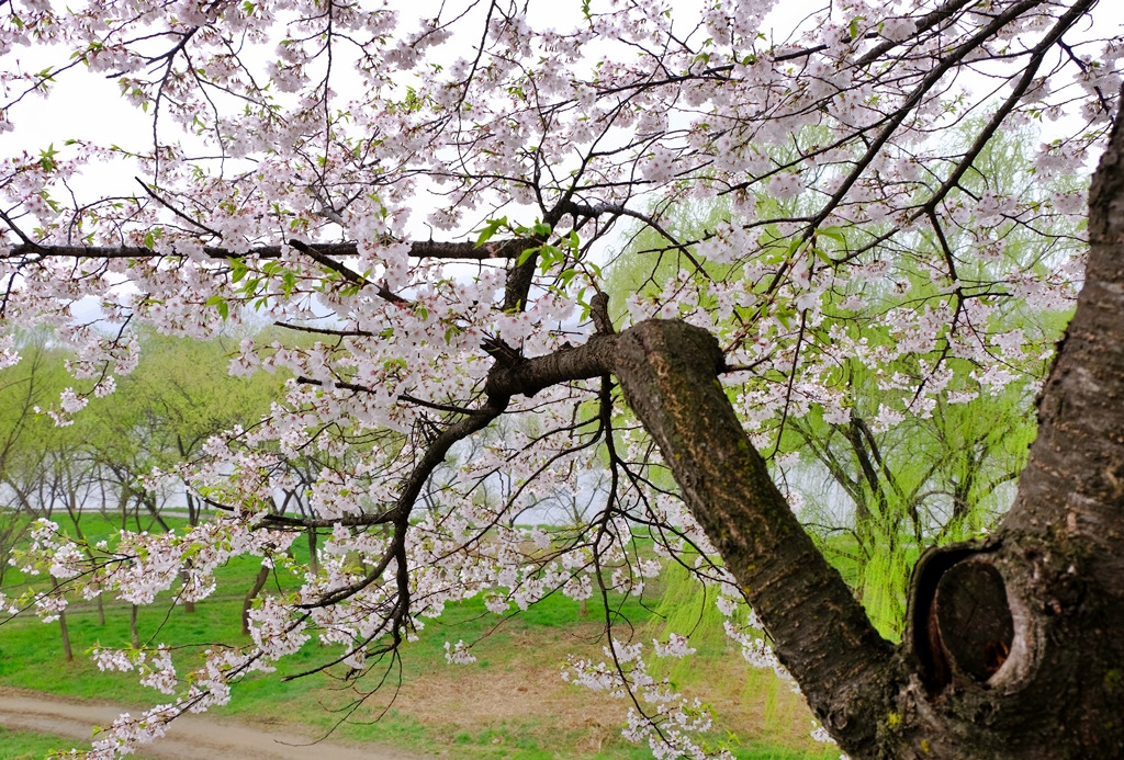 그래도 보슬비가 벚꽃을 흔들어대지 않아 창가로 바라보는 벚꽃은 아직 아름답습니다