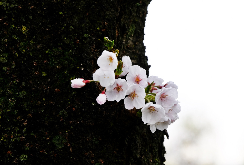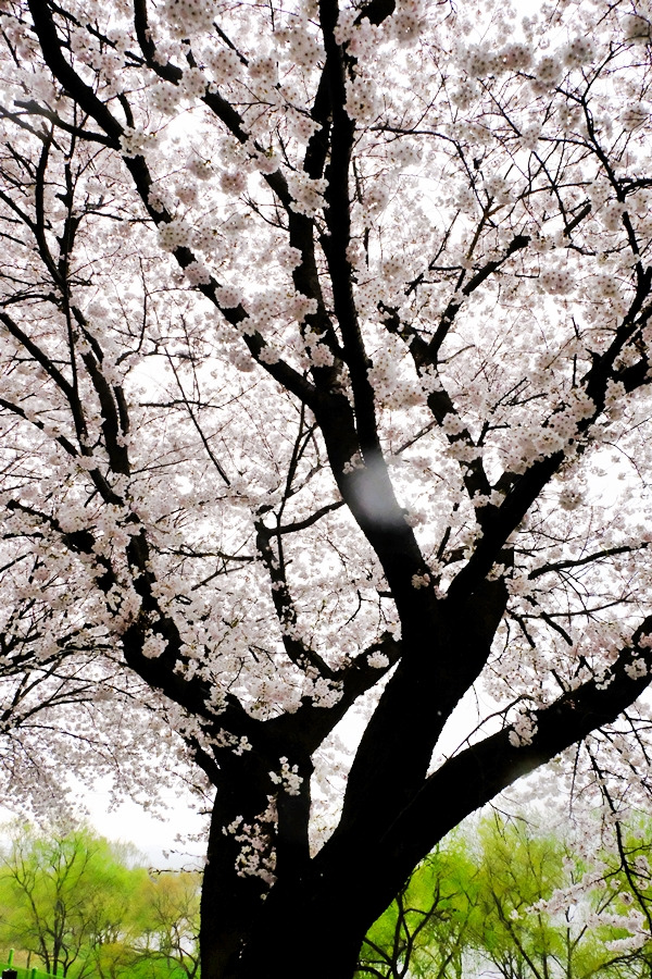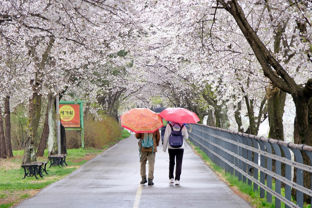만개한 벚꽃은 내리는 빗줄기를 따라서