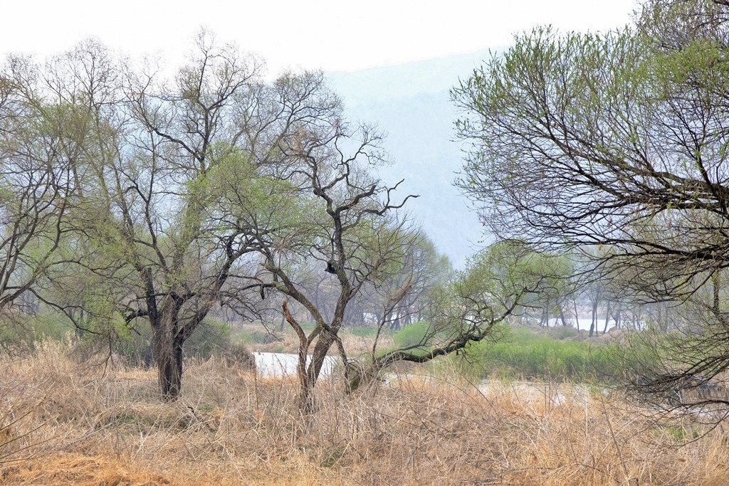 새 잎이 돋아나는 연초록의 수양버드나무,