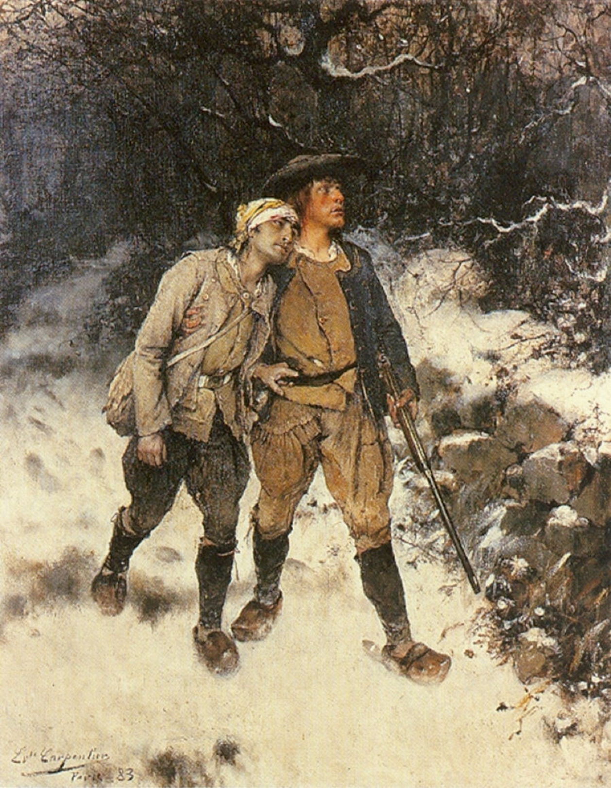 이 작품에서는 겨울 동안 루아르 강 북쪽으로 후퇴하는 제대로 된 장비를 갖추지 못한 왕당파 두 명을 묘사했다.