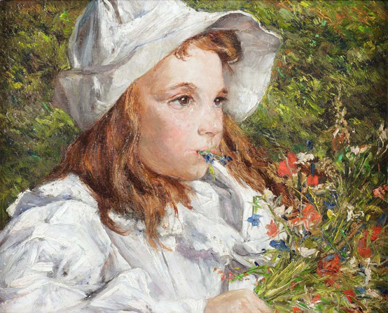 The girl with the bouquet
