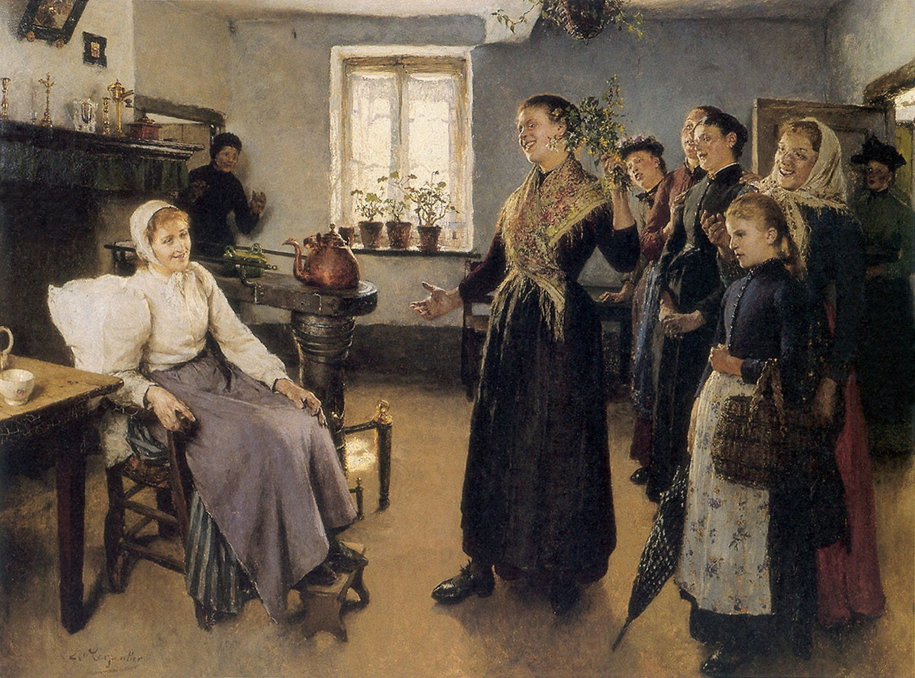 Visiting the Convalescent는 아마도 같은 해에 그려진 것으로, 많은 친구와 친척들이 병에서 회복 중인 여성을