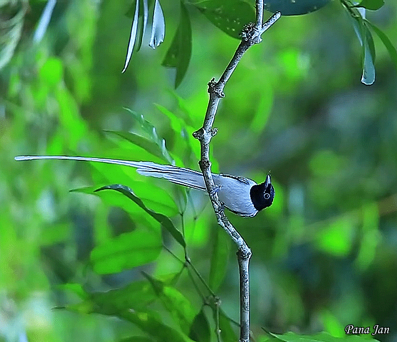 나는 도랑과 나뭇가지에 앉은 한 마리 새