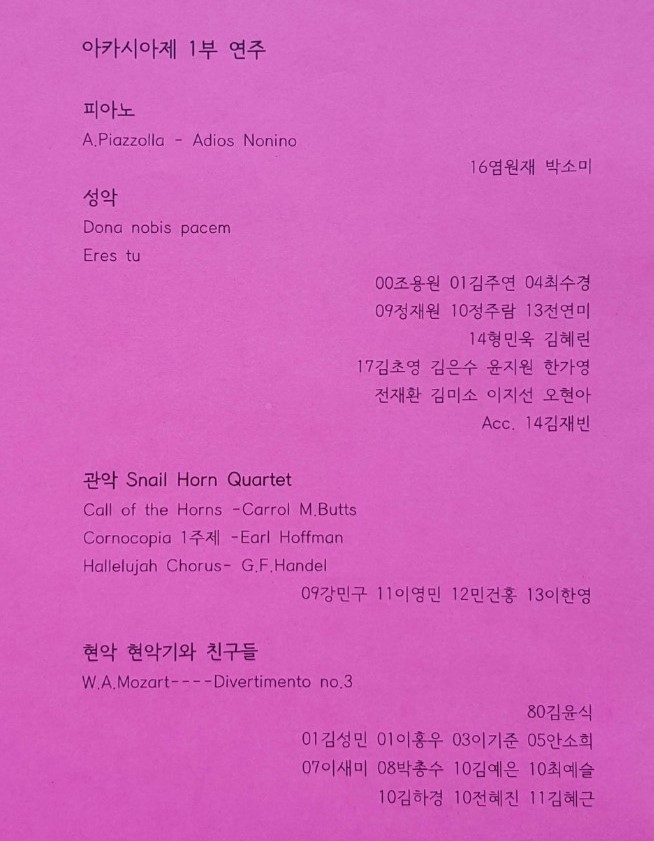 A. Piazzolla - Adios Nonino 곡이 울려퍼지며 아카시아제 연주회 개막을 알렸습니다.