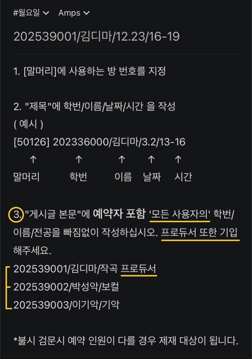 - 사용할 날짜와 시간에 맞춰 해당 말머리 지정 후