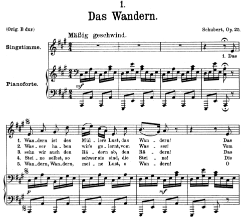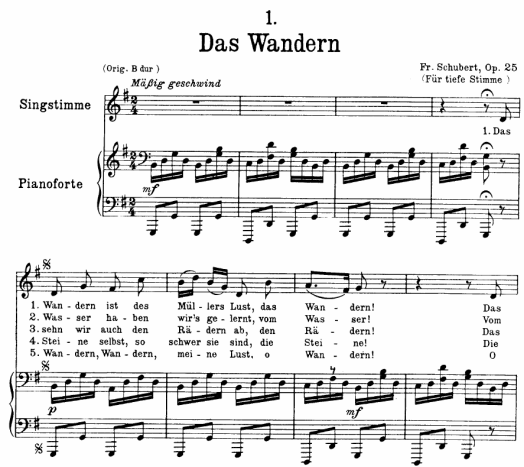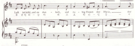먼저 이조라는 것은 말 그대로 이미 작곡 되어진 곡을 그대로 <옮긴다>는 뜻입니다 말하자면 아래에 3개의 악보가 있는데 모두 같은 곡으로 Schubert의 연가곡집 <아름다운 물레방앗간의 아가씨>에 나오는 첫 곡입니다 악보들을 보면 3개가 같은 곡이지만 조가 각각 B 플랫, A, G 장조로 되어 있는 것을 알 수 있습니다 조 기호도 다르고 음의 위치도 다르지만 곡에는 전혀 차이가 없습니다 Schubert는 처음에 작곡할 때에 B플랫 장조로 작곡했지만 노래를 하는 사람마다 음역의 차이가 있기 때문에 음역이 낮은 사람은 원곡을 자기 음역에 맞게 낮추어서 두 번째 악보나 세 번째 악보처럼 자기가 노래하기에 편한 음역으로 곡 전체를 낮춰서 부릅니다 이 경우를 이조라고 말합니다