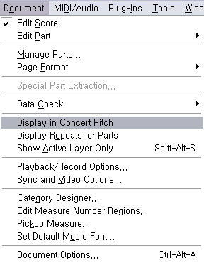 Display in Concert Pitch 실음기보라고 생각하면 간단합니다.
