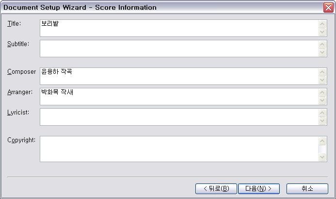 우선 취향에 맞게 악보정리를 해주시고, 아래와 같이 음표를 입력합니다.