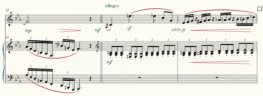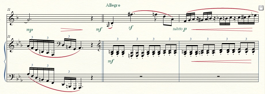 그리고 알레그로 밑의 꾸밈음은 그냥 솔을 입력후 음표에 커서를 두고 단축키 " ; "를 누르면 됩니다.