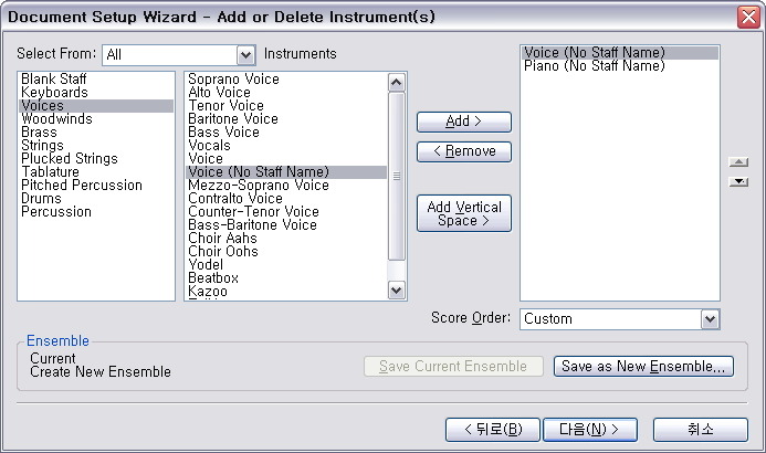 이 기능은 클라리넷, 혼, 트럼펫등의 이조악기파트를 입력하는데 유용한 기능입니다.