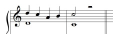 위에 보여 드린 예는 약간 변형된 예인데 캄비아타의 전형적인 예는 노타 캄비아타(Nota Cambita-이탈리아어로서 변화된 음의 뜻)의 형태로서 16세기 대위법에서 아래와 같은 형태로 자주 등장합니다