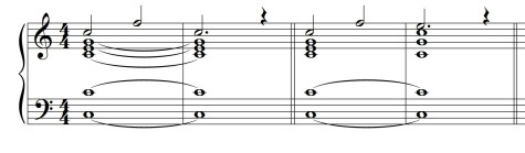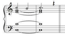 다음으로 지속음(Pedal Point, 저속음)이 있는데 이 비화성음적인 용법은 한 음을 낮은 성부에서 길게 지속하여 비화성음적인 효과를 사용하는 경우를 말합니다 파이프 오르간 연주시 발로 페달을 길게 누르면서 연주하는 것처럼 한 성부에 지속음을 유지하며 진행하는 것을 말합니다 대개 으뜸음이나 딸림음에 지속음을 사용하는데 한 음을 길게 지속하는 경우도 있고 시차를 두고 계속적으로 지속음을 반복하는 경우도 있습니다