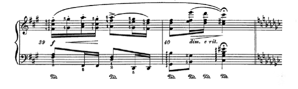 세자르 프랑크도 이러한 예를 사용하였습니다 아래의 악보는 그의 교향곡 라단조 1악장의 처음 부분으로 피아노로 편곡한 악보입니다