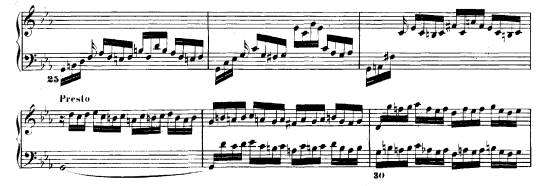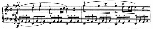 그 예로서 모짜르트의 소나타 K.545의 2 악장에서의 한 부분을 보여 드립니다