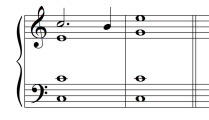 그렇기 때문에 비화성음은 꼭 화성의 구조와 관련 지어져서 쓰이는데 비화성음을 쓸 때에는 최소한 앞이나 뒤의 어느 한 쪽에 순차적인 진행이 있어야 됩니다 말하자면 다음과 같이 도미솔 화음으로 이루어진 진행에서 소프라노의 F음이 어느 한 쪽에도 순차적인 진행을 하지 않을 때에는 비화성음의 용법 중의 어느 경우에도 해당되지 않으므로 사용해서는 안됩니다