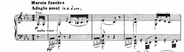 우리에게 장엄함으로 너무나 잘 알려진 베토벤의 영웅 교향곡의 2악장의 처음 부분에 경과음이 잘 사용된 예를 보여 드립니다