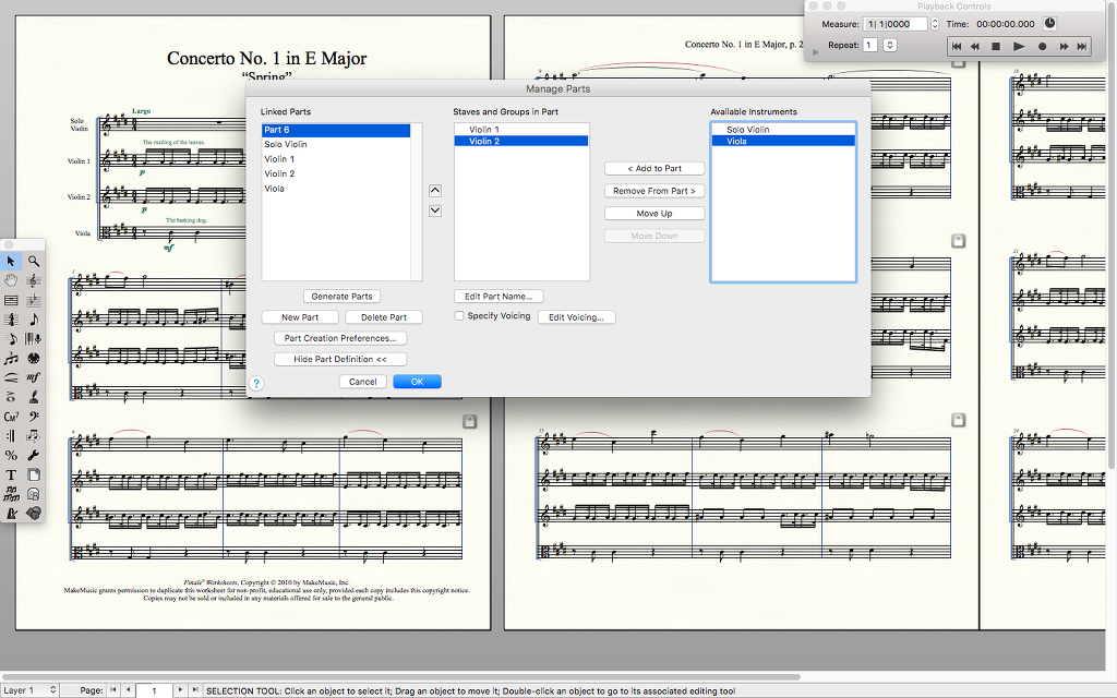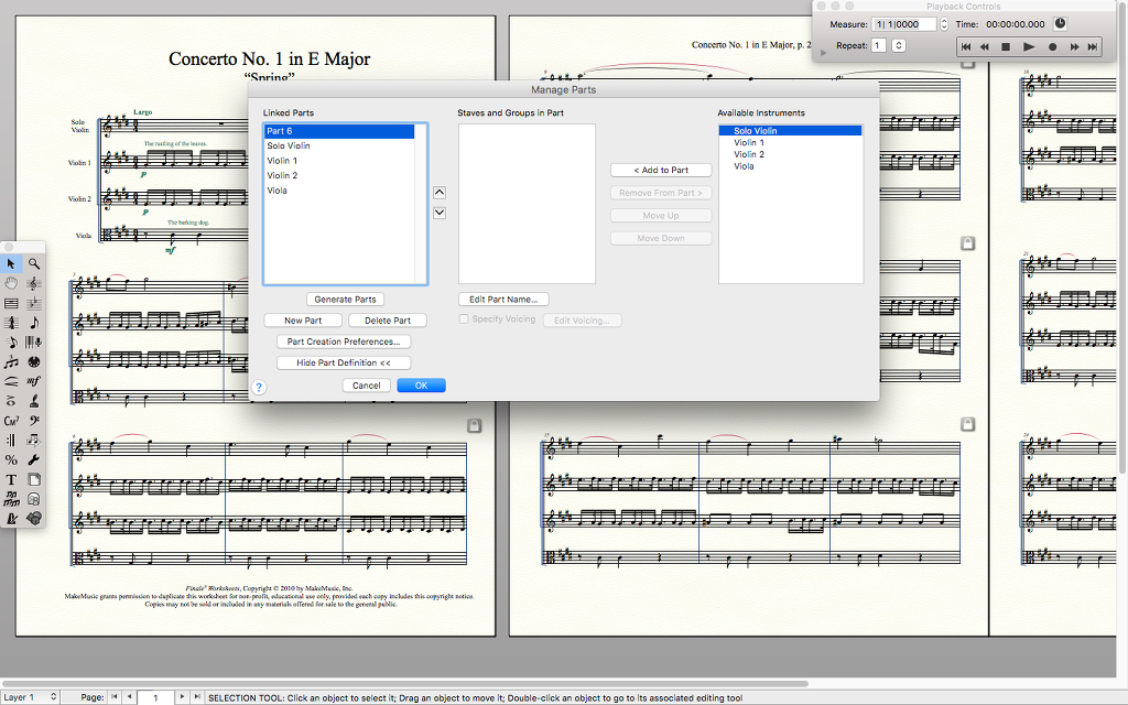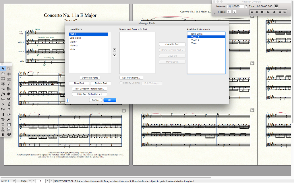 새로 생긴 'Part6'을 선택하고 맨 오른쪽 창-Available Instruments(가능한 악기)에서 묶고싶은 악기를 클릭합니다.