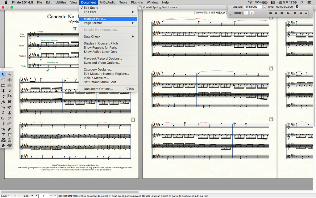 한 파일에 파트악보가 묶여서 저장되기 때문에 장수가 많고 복잡한 오케스트라 악보와 그 파트보의 경우에 꼭 필요한 기능이라고 할 수 있습니다.