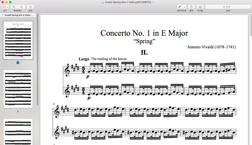 저는 바이올린 1,2파트만 묶어 보았습니다.