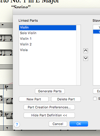 아래와 같이 Violin1과 Violin2가 한 악보에 묶여서 나옵니다.