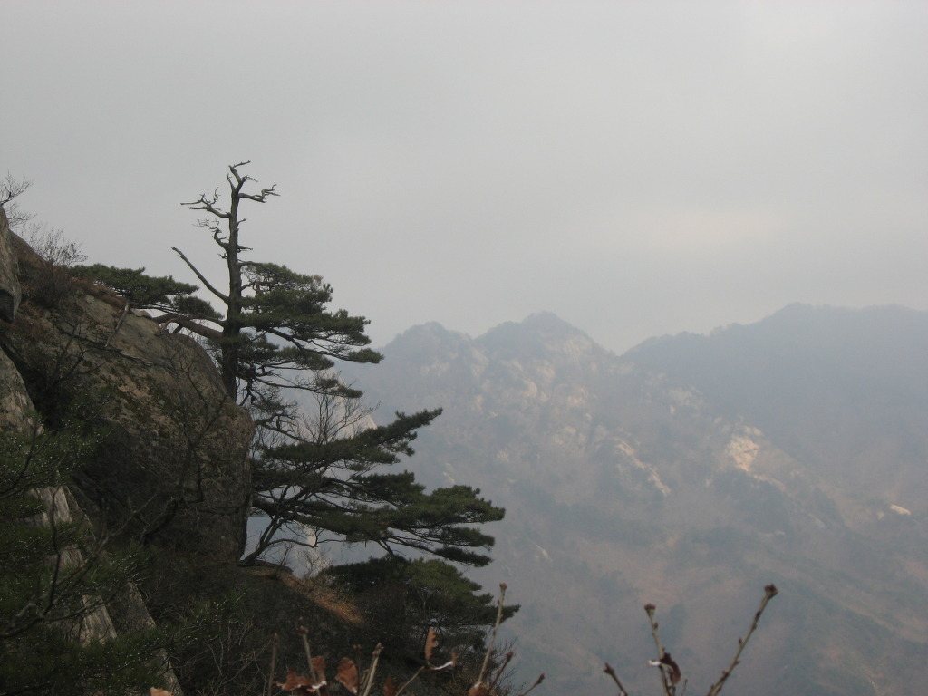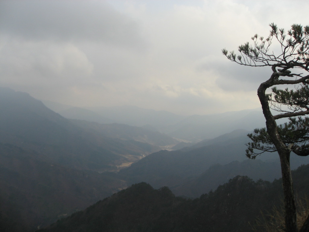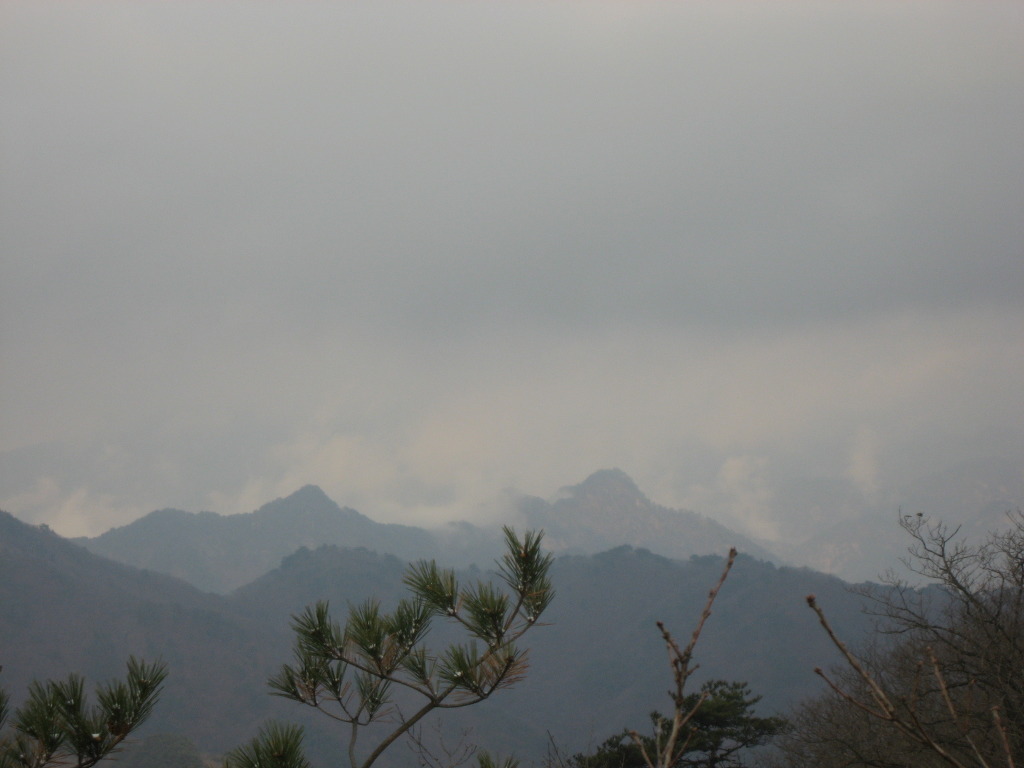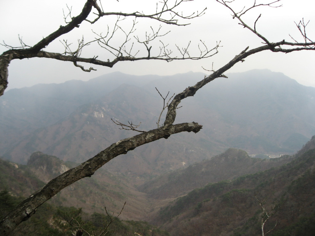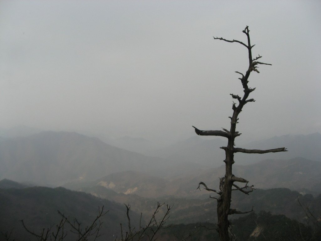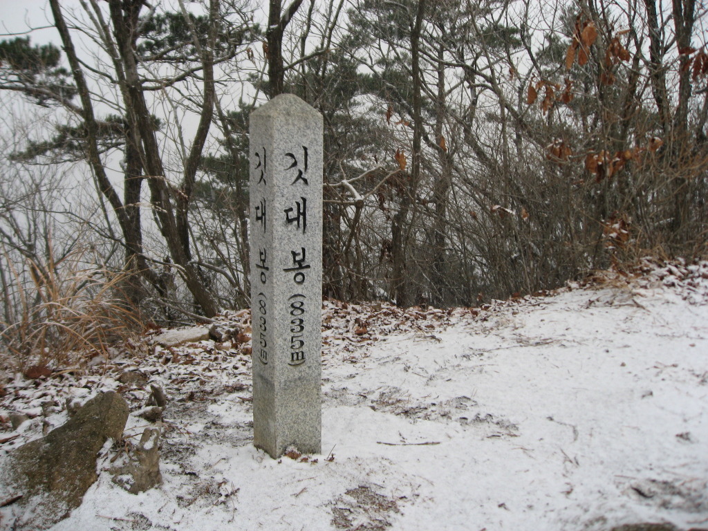 샘터에서 잠시 쉬었다가 식수를 다시 점검하고 경사가 급한 소나무숲과 참나무숲을 지나 능선길에 올라서면 시야가 탁 트인 1005.8봉인 헬기장에 도착하는데 사방이 시원하게 뚫려 참나무가 일부 가려있는 정상보다 전망이 좋으며 샘터에서 이곳까지는 약 20분정도의 시간이 걸린다.