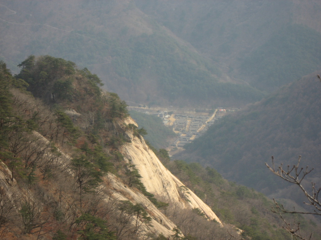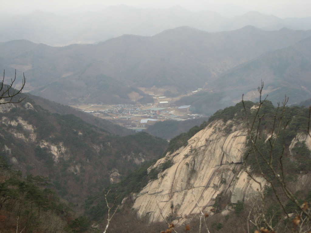 남쪽에 백화산, 서쪽에 조령산, 북쪽으로는 1,107고지인 주봉이 보인다.