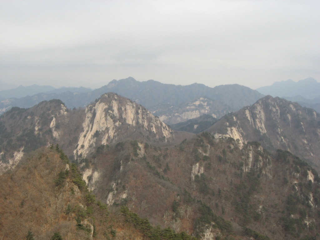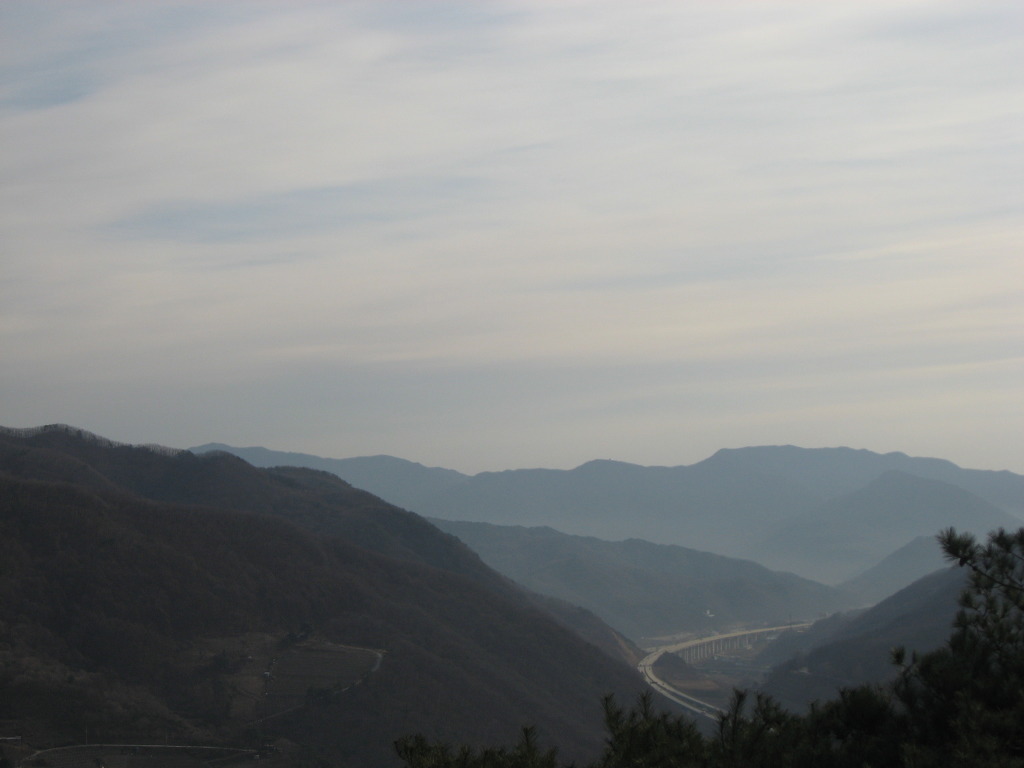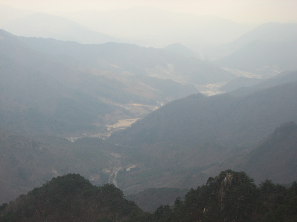 산 정상에 올라서면 운달산과 그 왼쪽으로 멀리 소백산 등이 이어진다.