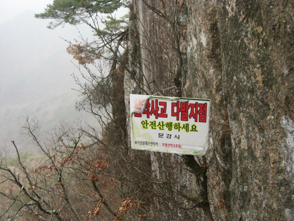 그러나 조령종주는 산행 초보자들은 참여하지 않는 것이 좋다. 곳곳에 위험지대가 도사리고 있기 때문이다. 또한 바위지대가 많기 때문에 습기나 눈,얼음 등이 있어 바위가 미끄러운 때는 종주산행을 하지 않는 것이 옳은 판단이다. 이화령~조령산 정상까지는 위 구간과 같아 생략한다.