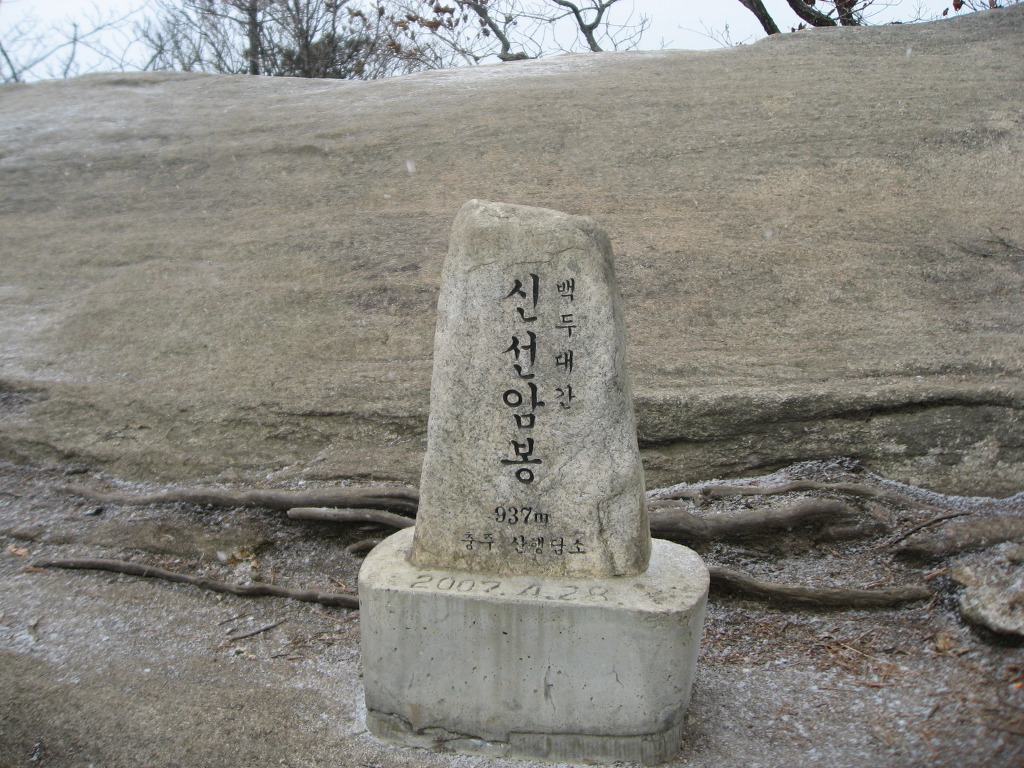 조령산 정상(1,026m) -<70분>- 신선암봉(937m) -<15분>- 신선암봉 지나 잘록이 -<30분>- 화덕골 내려 암반 소폭포 -<5분>- 표고버섯재배지 -<10분>- 꾸구리바위 -<35분>- 문경새재주차장