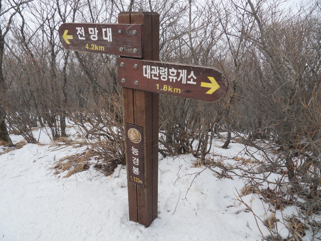 가는 눈발이 휘날린다. 잔설만 날리고 바람만 심하고 조망또한 엉망이네.ㅠㅠ
