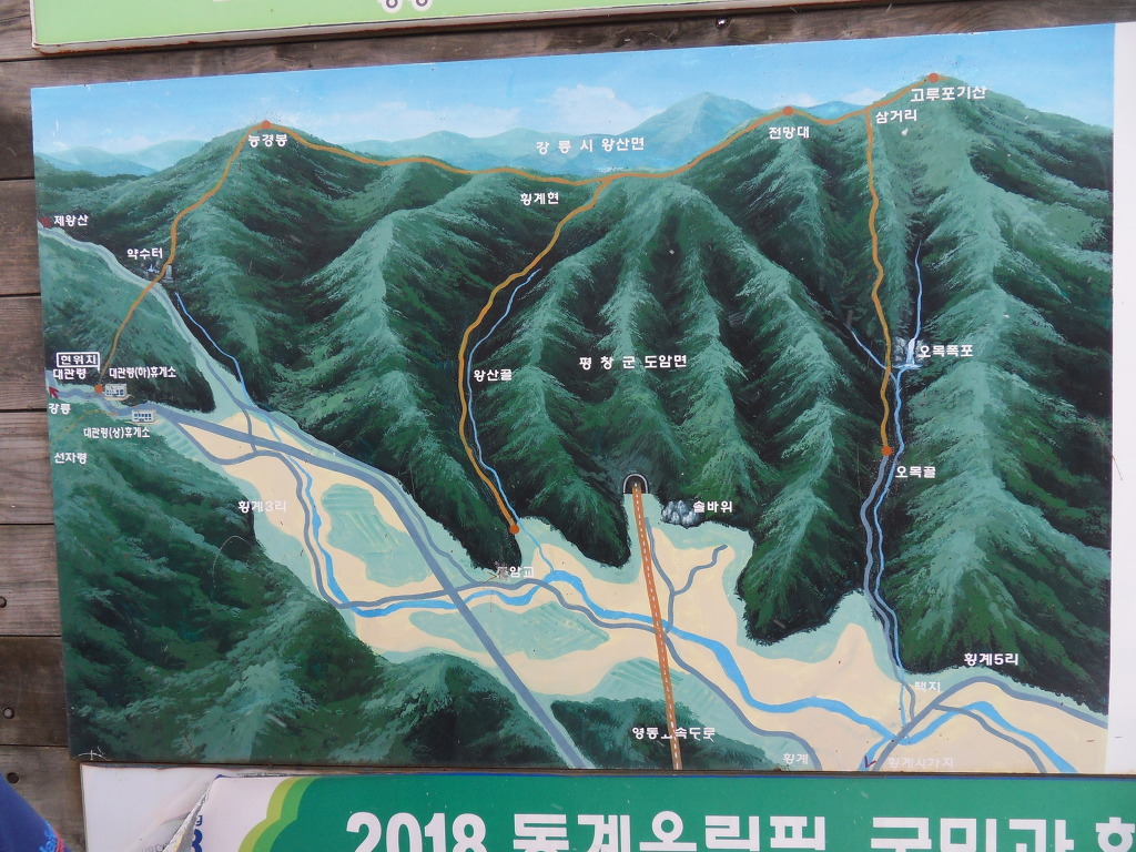 로이어지는데 우리는 오목골로 하산할 예정이다. 백두대간을중심으로 서쪽은 영서지방, 동쪽은