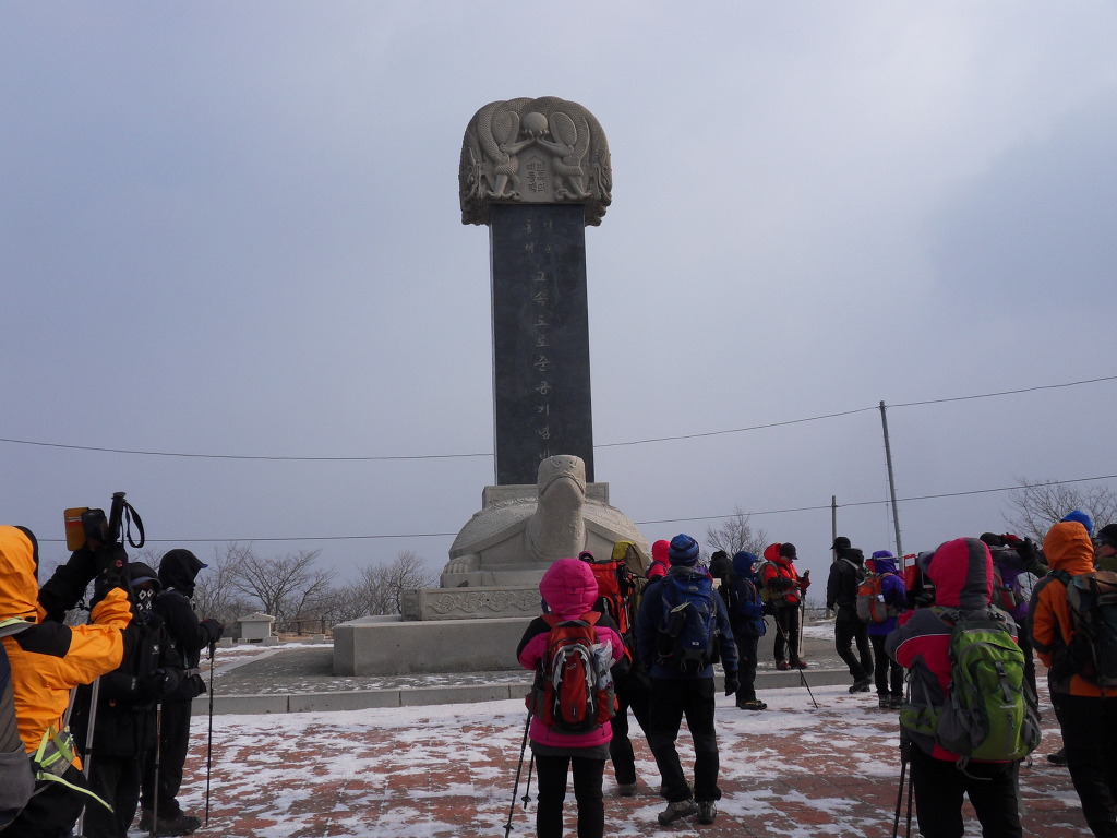 고속도로 준공비에서 단체사진을 찍고 능경봉으로 향한다. 오늘산행코스는 백두대간의 일부로서
