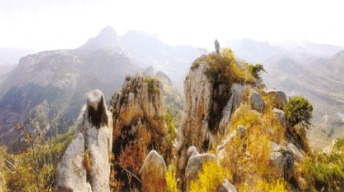 곤륜산 백미석벽과 곤륜산(932m)정상모습