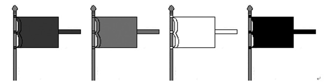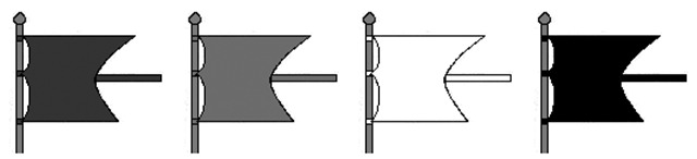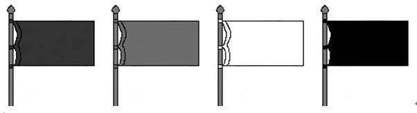 전위는 적색 바탕, 우위는 백색 바탕, 후위는 흑색 바탕이다. 위장의 명령에 응할 때에 쓴다.