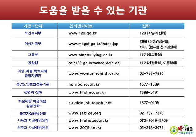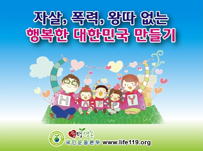 생명존중 문화, 교육, 예술사업 및 자살예방 사업, 폭력, 왕따 없는 나라 행복한 대한민국 만들기를 위한 생명생존 국민운동 본부입니다.