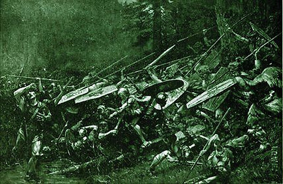 로마군은 정상적인 명령하에 나아갈 수 없었고, 마차를 움직이기 위해 무기도 버려두고 애를 썼다. 그러나 바로 이 때 아르미니우스가 이끄는 2만여명의 호전적이고도 황당한 그리고 상상을 초월한 그 거칠은 게르만족들의 공격이 시작되었다.