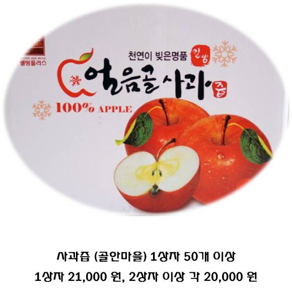 사과즙. 50 개 이상, 1 상자 21,000 원, 2 상자 이상 주문 시 각 20,000 원