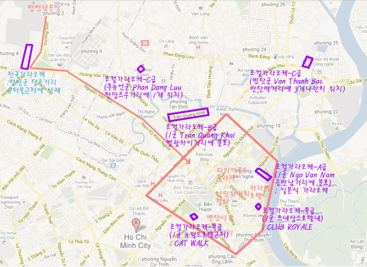 1군의 우측편 Ngo Van Nam(응 반 남)거리에 위치한 일본식 가라오케들입니다.