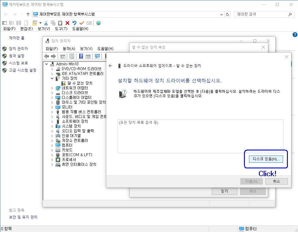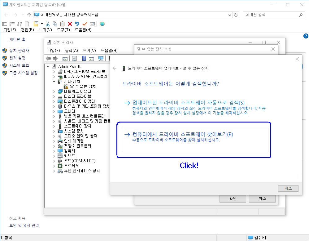 이 때는 다음 드라이버를 아래 방법에 따라 설치하시기 바랍니다.