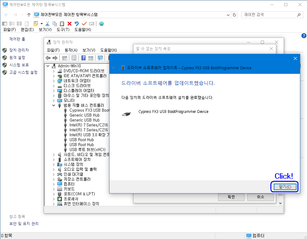 제어판 ==> 시스템 ==> 장치관리자 ==> 기타 장치 ==> 알수 없는 장치(혹은 NANO USB Programmer) ==>