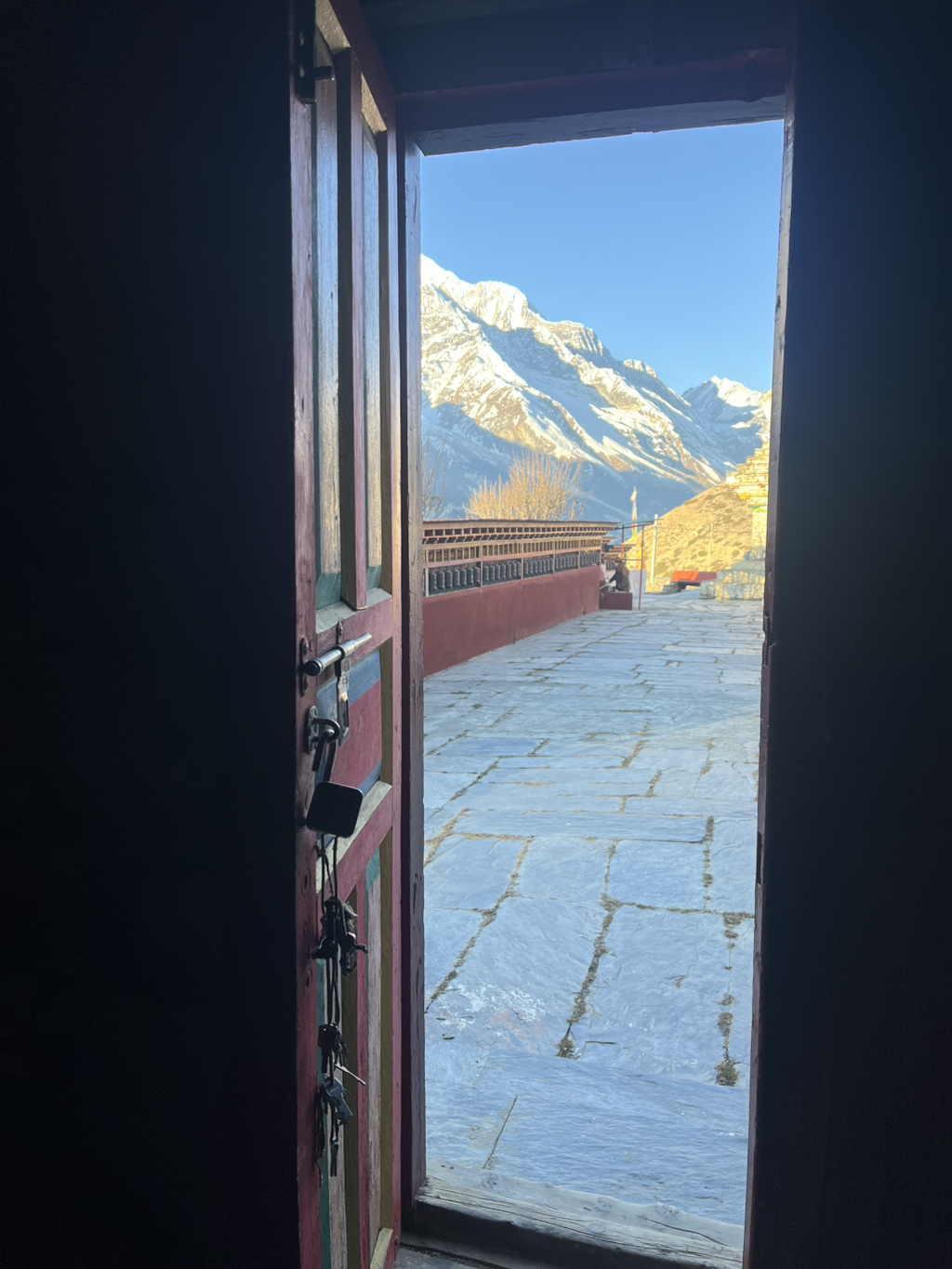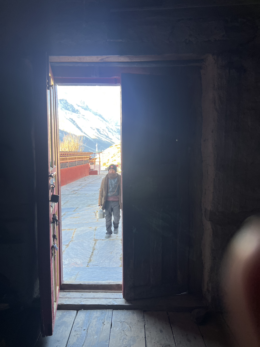 나는 법당에 들어가 자리를 깔고 앉는다. 눈을 감고, 내가 오래 상상해왔던 순간과 지금 이 순간을 함께 느낀다. 한참을 그렇게 앉아 있는 동안 등 뒤에서 안나푸르나가 말없이 나를 바라보고 있다.