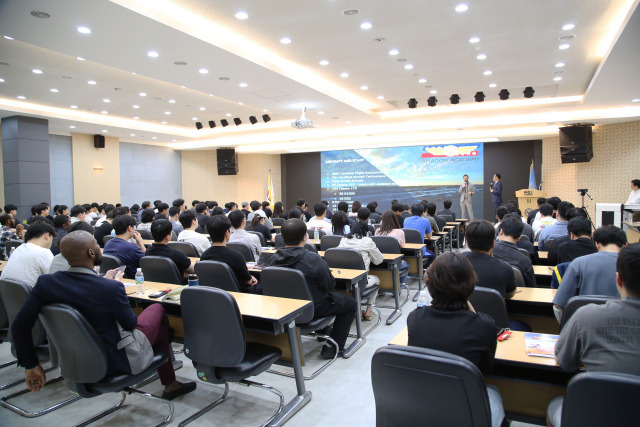 한편 제막식 후에는 한국항공대 교내 비전홀에서 ‘FAA 미국 항공정비사 자격증 및 인턴십 프로그램’을 주제로 스콧 사이크스의 특강이 진행됐다. 특강에는 한국항공대 항공기술교육원 재학생과 공과대학 항공MRO 전공 학생, 외국인 유학생 등 200여 명이 참석해 글로벌 항공정비사 취업에 대한 높은 관심을 보였다.